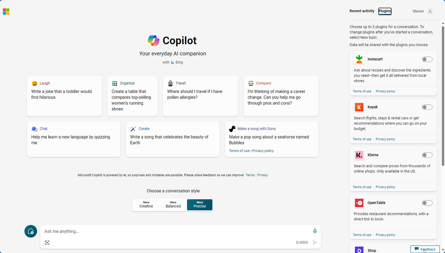 If you use Copilot, you are now able to add "plugins" to the chat. The list is currently rather limited (7), but you can already connect up to 3 to one chat to get specific output or that from specific sources.