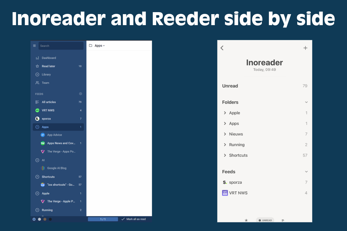 Feedly/Inoreader can plug into other apps, too. For example, if you prefer the interface through a macOS / iOS app such as Reeder, you can organize your feeds through Feedly/Inoreader and then read them through Reeder.