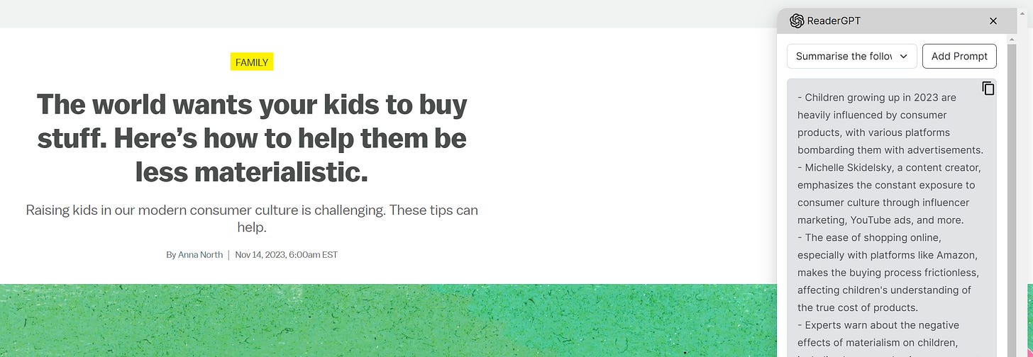 One thing to note is that you can't "chat" with ReaderGPT to ask specific questions on your webpage. So you either need to change your prompt, or use another tool.